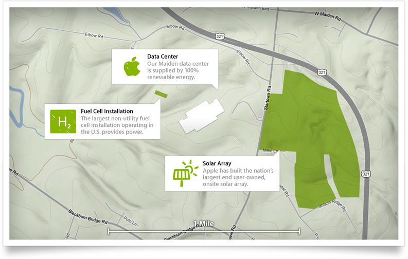 Datové centrum Apple v Maidenu pohání elektřina ze solární elektrárny, foto: Apple