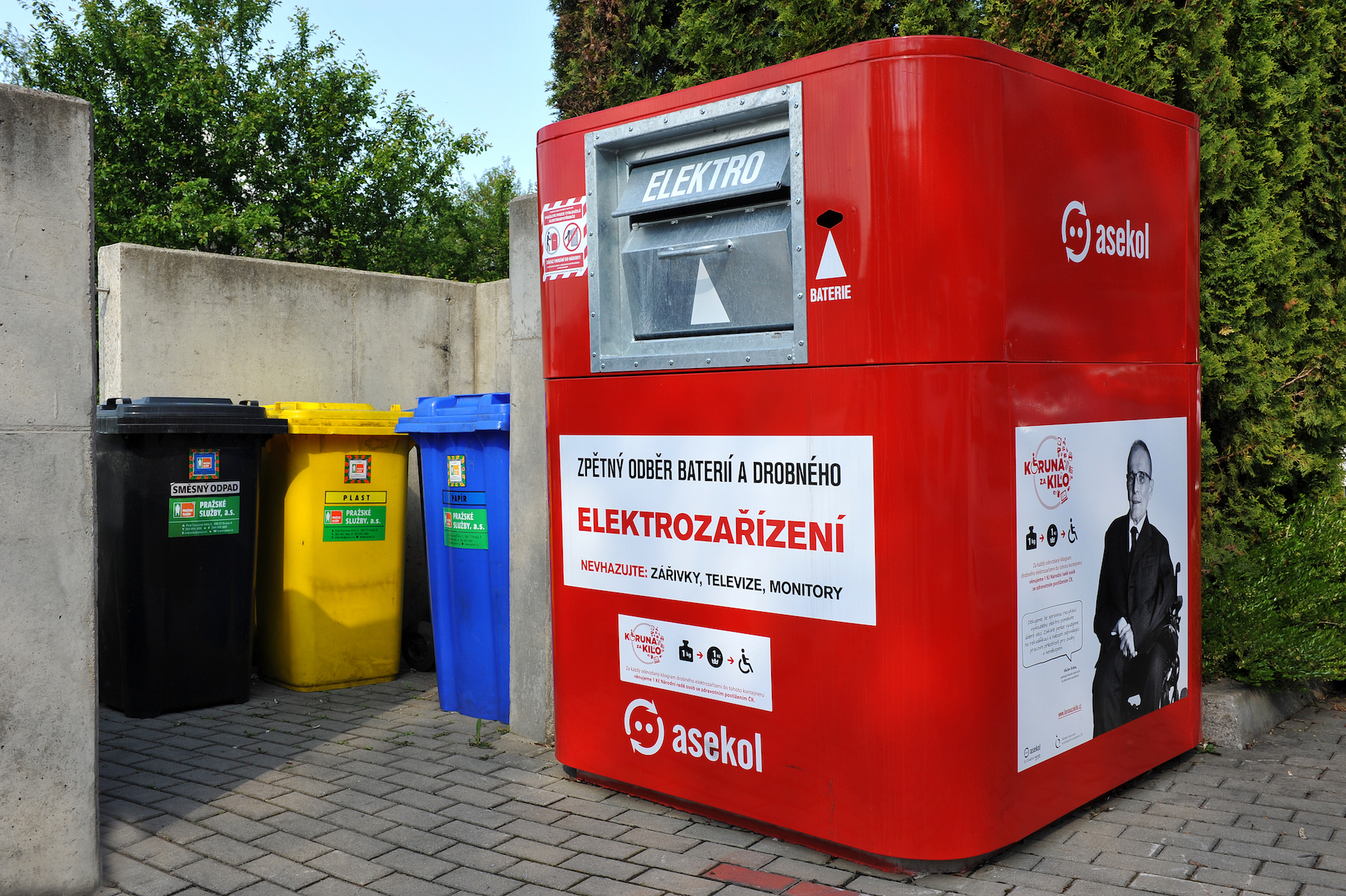 Červený elektrokontejner ASEKOL pro zpětný odběr elektroodpadu